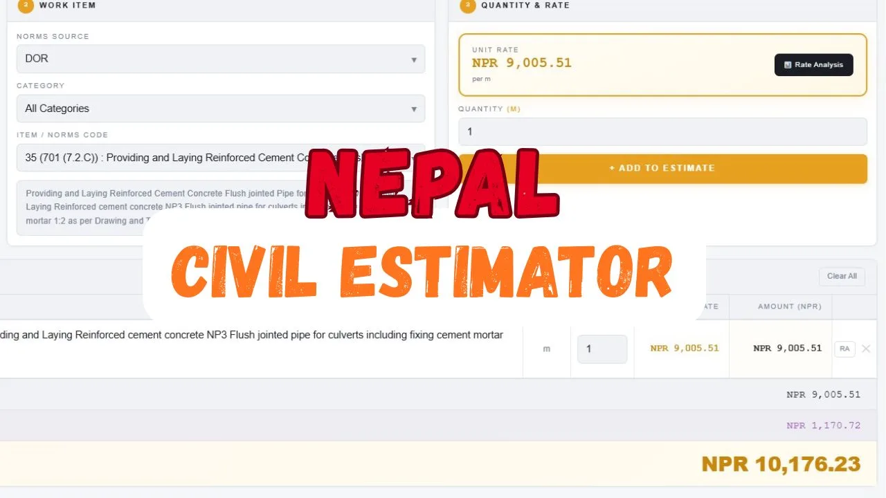 Use this Calculator to calculate HDPE pipe thickness and cost as per the NS40:2079 Nepal Bureau…
