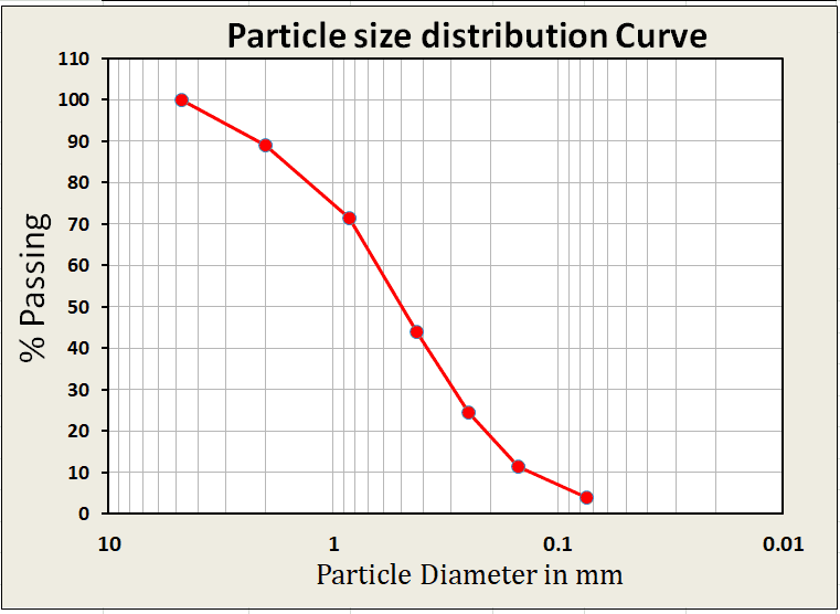 - Effective size (D10): It is the sieve size in mm from which 10% of the sand by weight can pass.