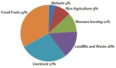 Figure: Methane production contributing sector (Source)